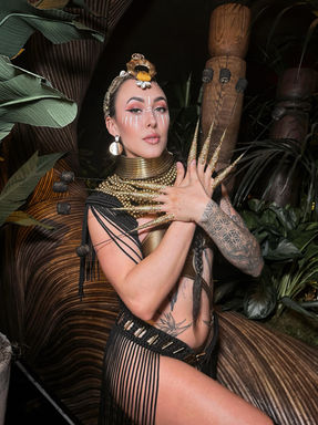 With years of experience bringing the heat to both festival stages and private corporate events her fire and flow arts are sure to captivate. A versatile artist she works with fire and LED props including fans, swords, hoops, palm torches, fingers, wings, veil fans and traditional fire eating torches. She is insured and maintains a valid Nevada fire marshal approved performer license.